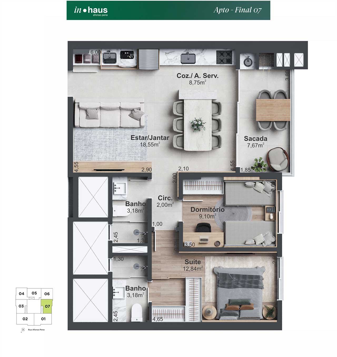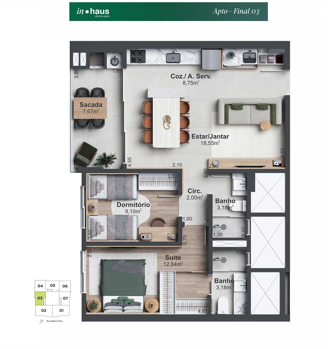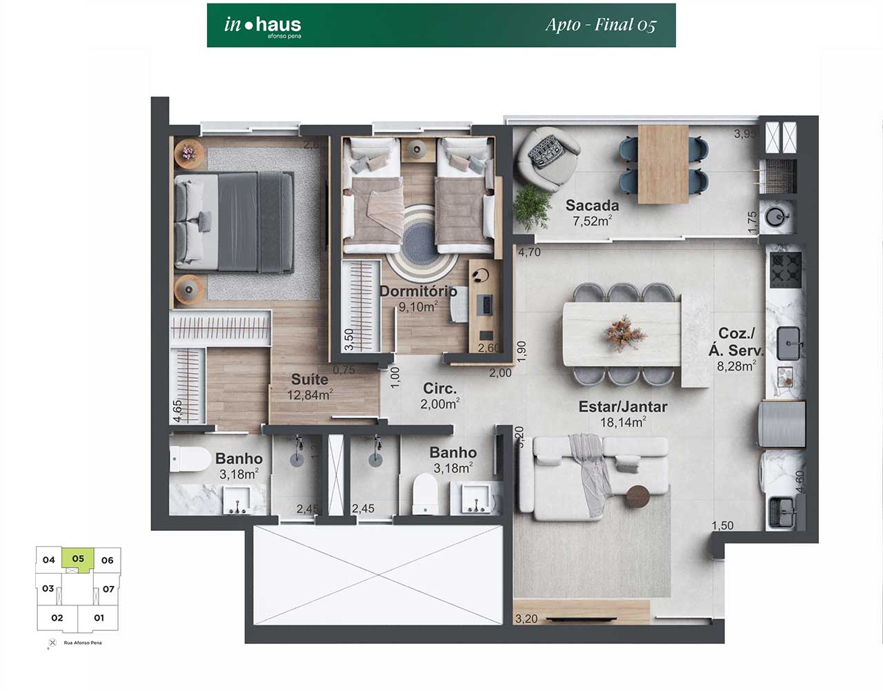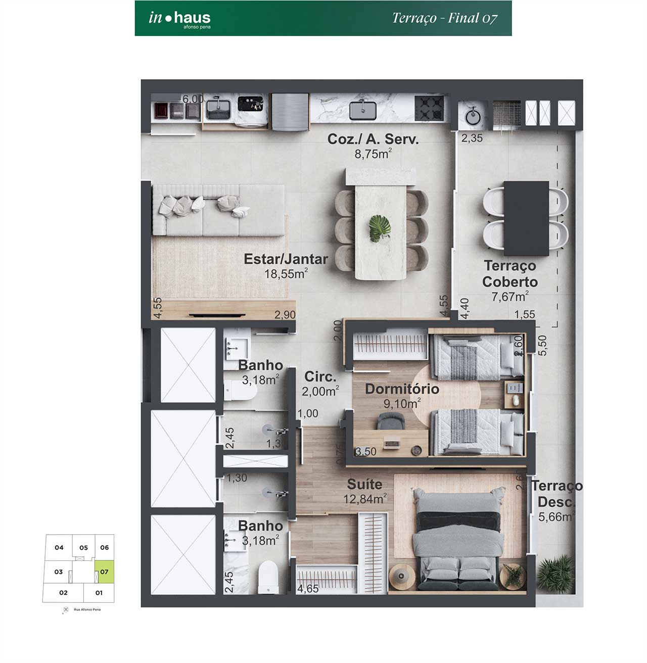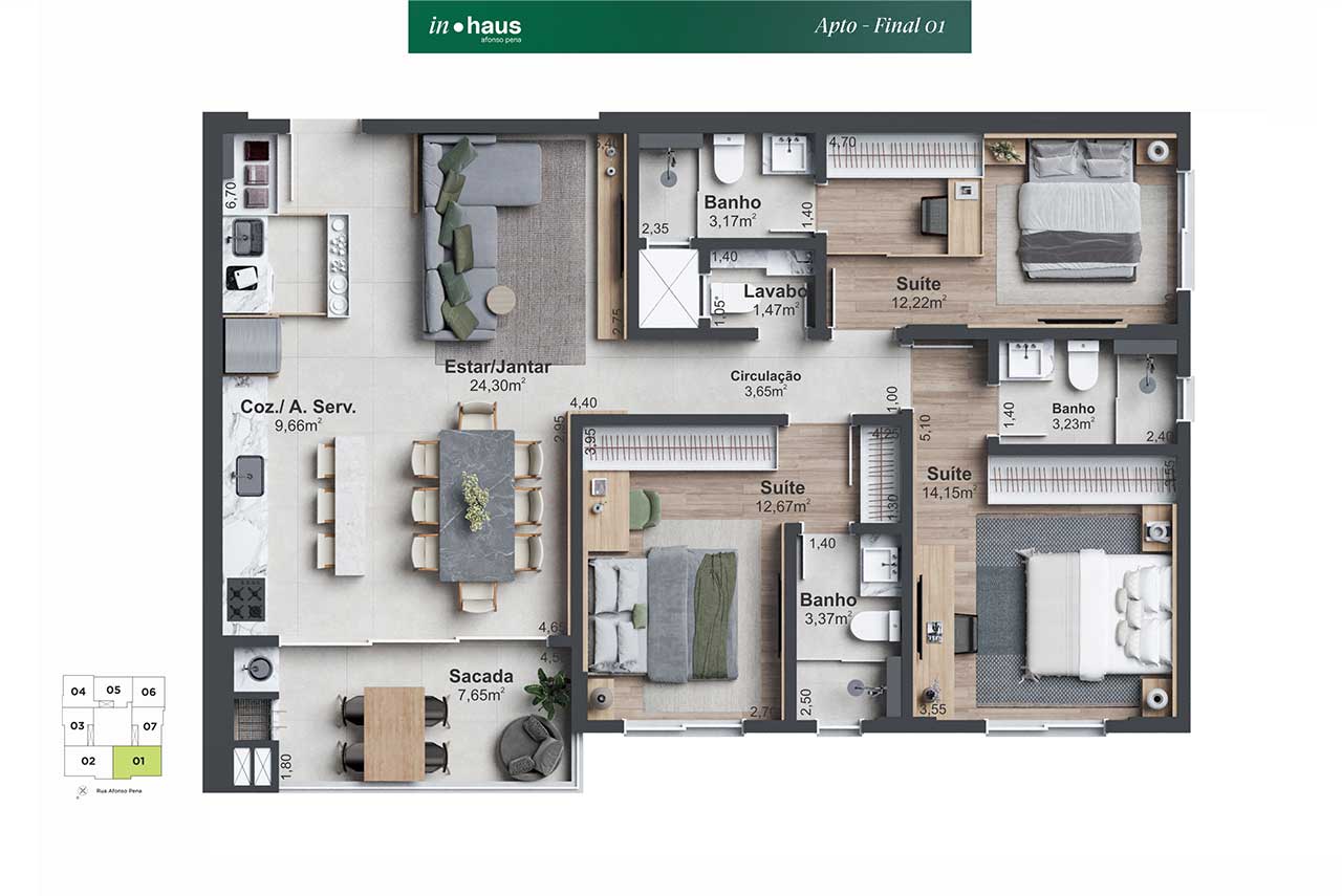O projeto do In Haus Afonso Pena oferece uma nova perspectiva sobre o conceito de lar, com um design moderno que se adapta ao estilo de vida híbrido e ao ritmo dinâmico da cidade. Localizado no Estreito – um bairro em constante transformação e crescimento -, o empreendimento alia a convivência da centralidade à tranquilidade das áreas comuns, permitindo momentos de desaceleração e conforto.